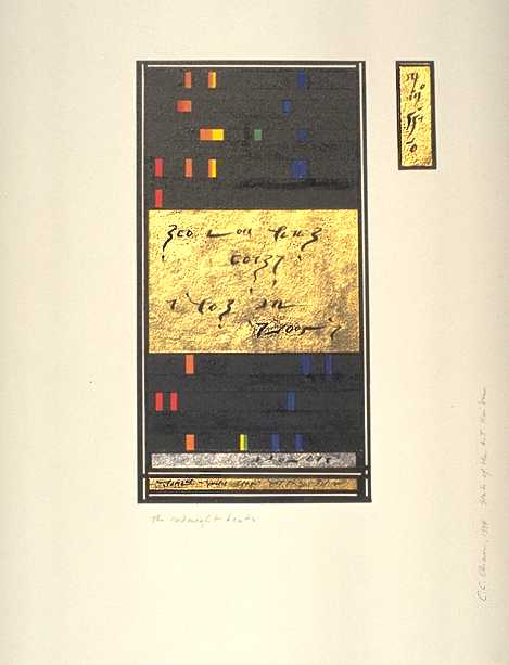 23K gold leaf, pen, brush and ink, coloured pencil, conceptual calligraphy. |